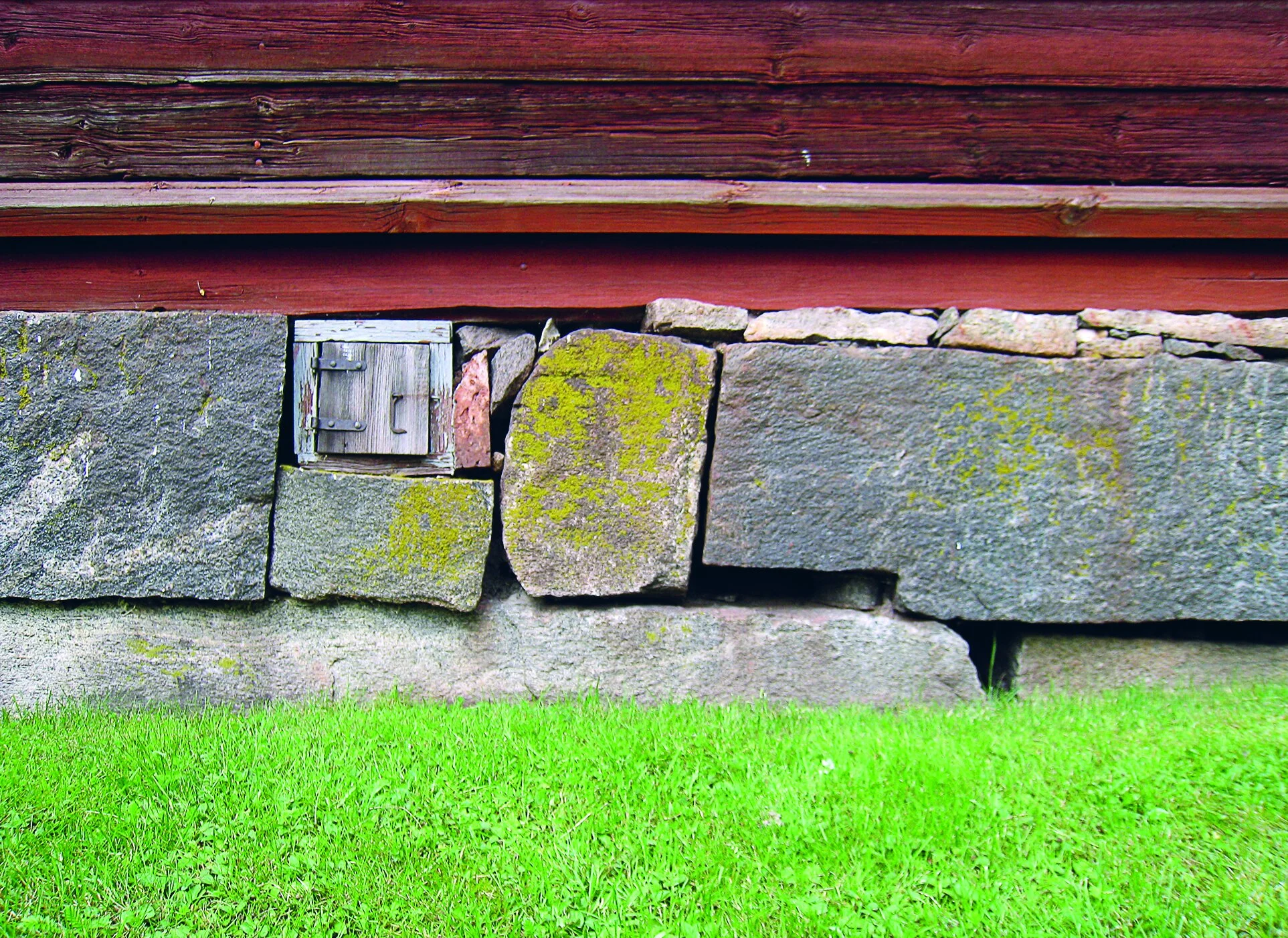 Yli-Lauroselan talossa Ilmajoella on kunnollinen sokkeli luonnonkiviharkoista sekä oikeanlaiset kissanluukut. Kuvanottohetkellä ruoho vihertää…Siis luukut auki ja ilma kiertämään!